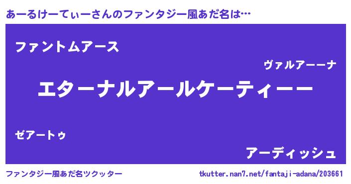 | 欧米人風あだ名 | 『あーるけーてぃークリステル』 |
