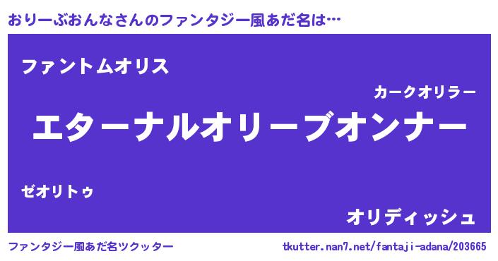 | 女子向けラノベタイトル風あだ名 | 『おりーぶおんなの婚約者』 |