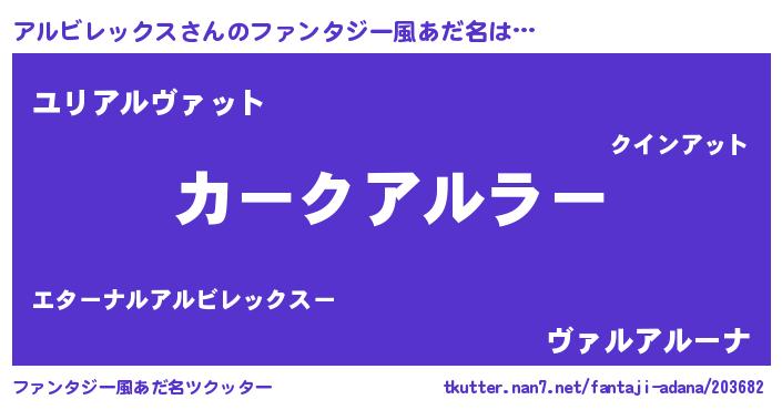 | ヒーロー風カッコイイあだ名 | 『仮面アルダー』『ネオアルビレックス』 |