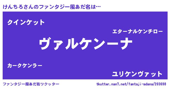 | 男性向けラノベタイトル風あだ名 | 『魔弾の王とけんちろ』 |