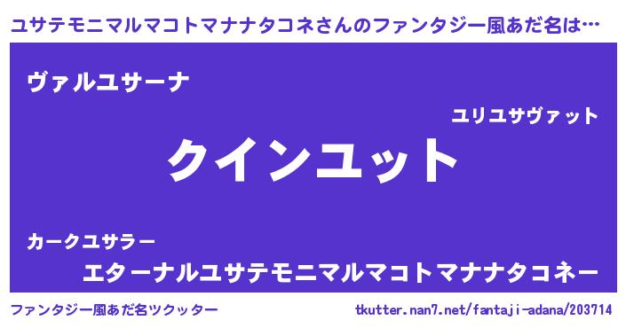 | 男性向けラノベタイトル風あだ名 | 『ノーゲーム・ノーユサテモニマルマコトマナナタコネ』 |