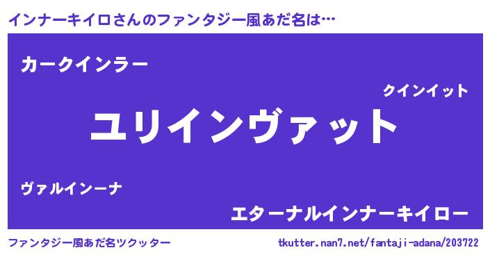 | 男性向けラノベタイトル風あだ名 | 『インナーキイロ~年齢イコール彼女いない歴の魔法使い~』 |