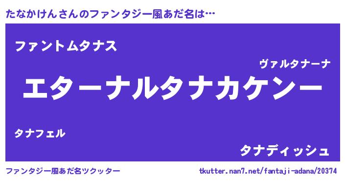 | 男性向けラノベタイトル風あだ名 | 『やはりたなかけんの青春ラブコメはまちがっている 』 |