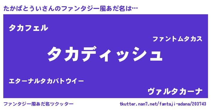 | 意味不明あだ名 | 『永久保存たかばとうい』 |