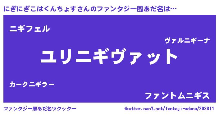 | 欧米人風あだ名 | 『トリンドルにぎにぎこはくんちょす』 |