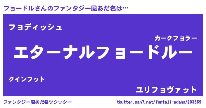 | 意味不明あだ名 | 『フョードルフォーエバー』 |