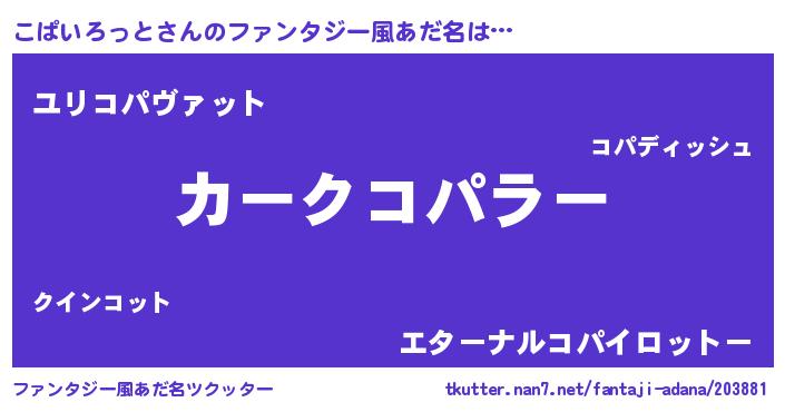 | 意味不明あだ名 | 『ニラ科こぱいろっと属』 |