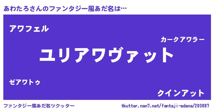 | 男性向けラノベタイトル風あだ名 | 『あわたろ~年齢イコール彼女いない歴の魔法使い~』 |