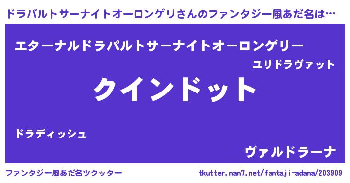 | 欧米人風あだ名 | 『ダニエルドラパルトサーナイトオーロンゲリ』 |