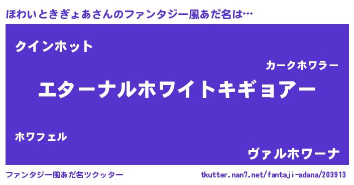 | 意味不明あだ名 | 『ほわいときぎょあフォーエバー』 |
