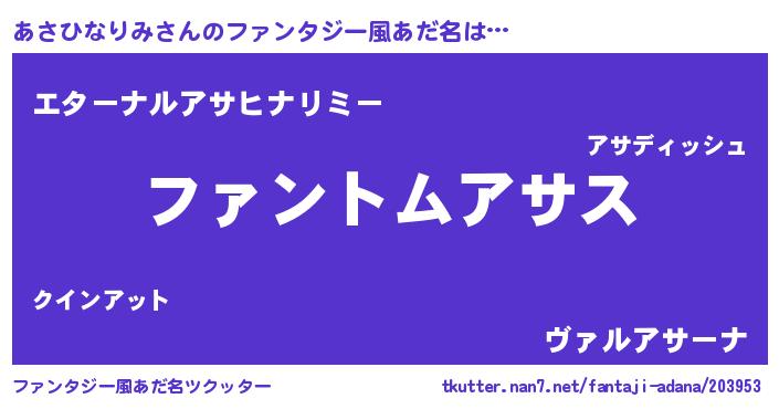 | ポケモン風あだ名 | 『ヒアサヒナリミ』『アサヒダネ』 |