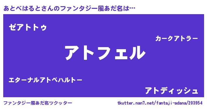 | ヒーロー風カッコイイあだ名 | 『スーパーアトベハルト』『幻影騎士アト』 |