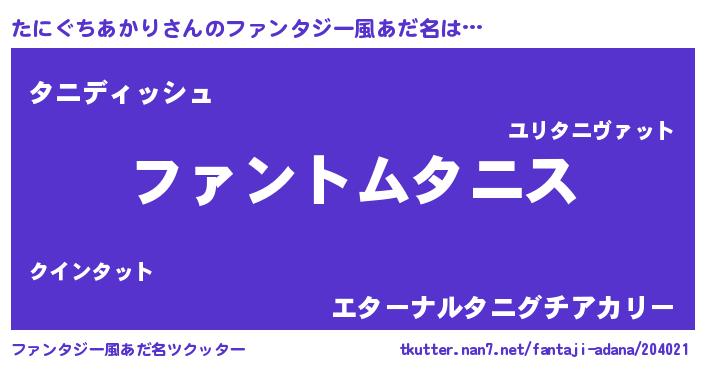| 女子向けラノベタイトル風あだ名 | 『たにぐちあかりの卵を拾いまして』 |