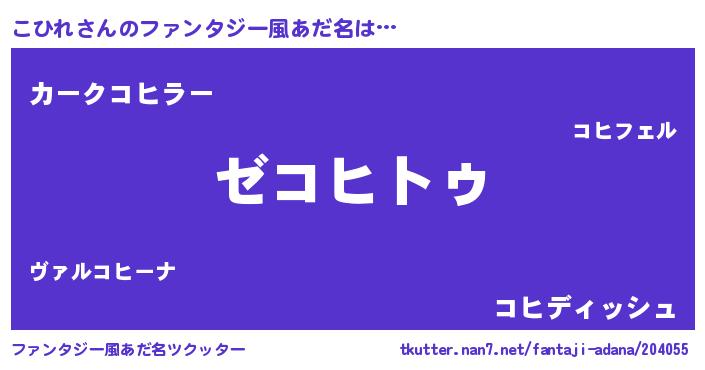 | ヒーロー風カッコイイあだ名 | 『超時空戦士コヒレ』『ネオコヒレ』 |