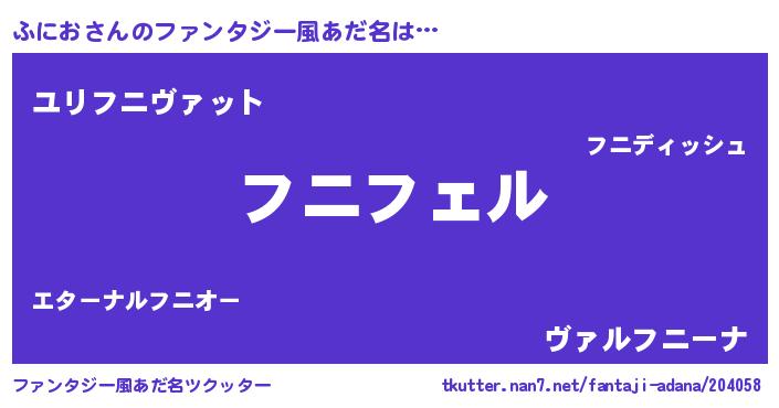 | 男性向けラノベタイトル風あだ名 | 『フニオアートオンライン』 |