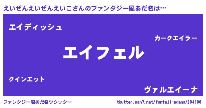 | 男性向けラノベタイトル風あだ名 | 『えいぜんえいぜんえいこの憂鬱』 |