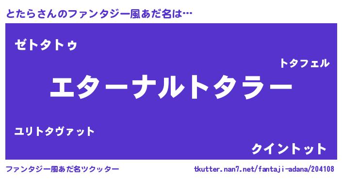 | 意味不明あだ名 | 『とたらフォーエバー』『自称とたら』 |