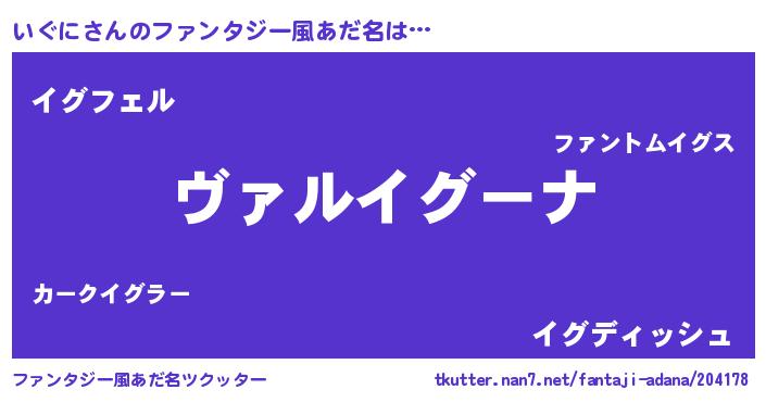 | 女子向けラノベタイトル風あだ名 | 『悪役いぐにに転生したようですが、知った事ではありません』 |
