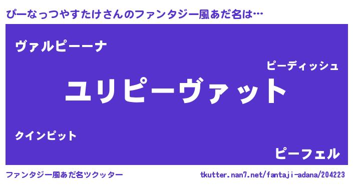 | 料理風あだ名 | 『ぴーなっつやすたけごはん』 |