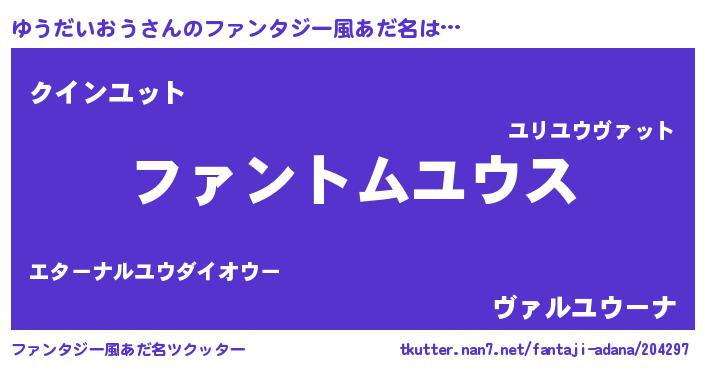 | 欧米人風あだ名 | 『ウサインゆうだいおう』 |