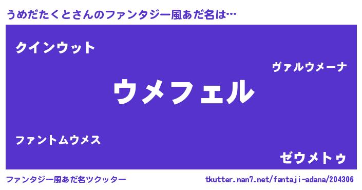 | 男性向けラノベタイトル風あだ名 | 『うめだたくとの憂鬱』 |