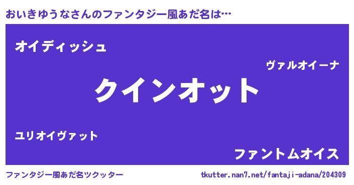 | 欧米人風あだ名 | 『ダニエルおいきゆうな』 |