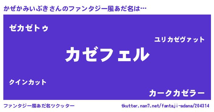 | 男性向けラノベタイトル風あだ名 | 『カゼカミイブキアートオンライン』 |