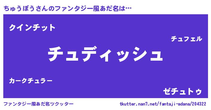 | 男性向けラノベタイトル風あだ名 | 『ちゅうぼうという概念が存在しない退屈な世界 』 |