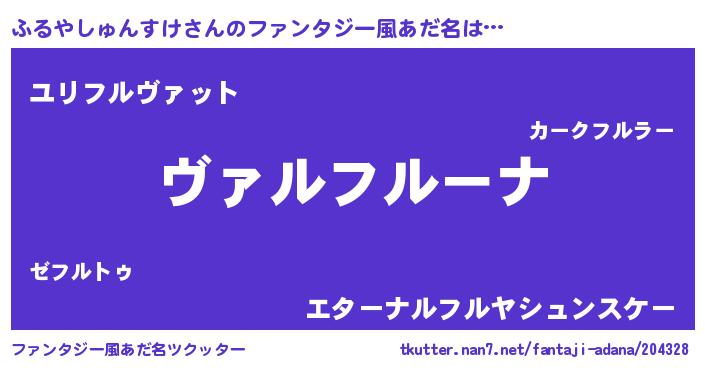 | 男性向けラノベタイトル風あだ名 | 『魔弾の王とふるやしゅんすけ』 |