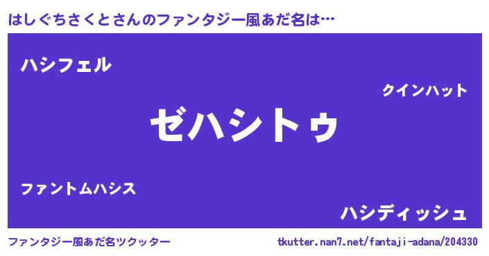 | 男性向けラノベタイトル風あだ名 | 『魔法科高校のはしぐちさくと』 |