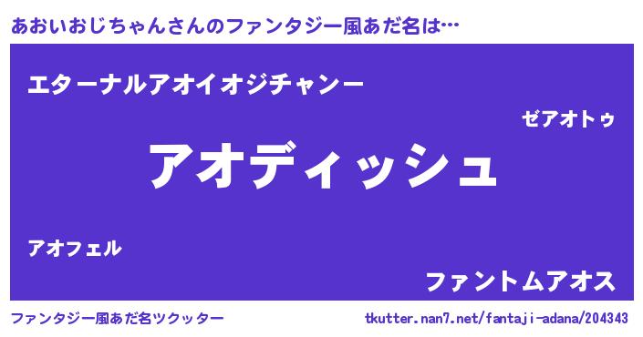 | ヒーロー風カッコイイあだ名 | 『ネオアオイオジチャン』『黄金騎士アオ』 |