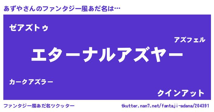 | 意味不明あだ名 | 『あずやフォーエバー』『自称あずや』 |