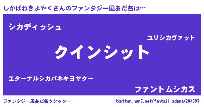 | ポケモン風あだ名 | 『シックウザ』『ゼニシカ』 |