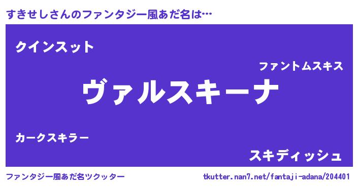 | ヒーロー風カッコイイあだ名 | 『仮面スキダー』『天空の使者すきせし』 |