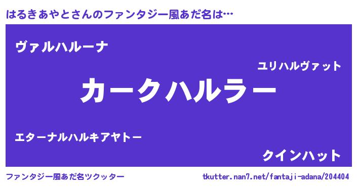 | 欧米人風あだ名 | 『はるきあやと・ステッグマイヤー』 |