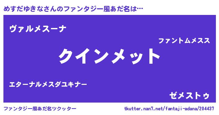 | 欧米人風あだ名 | 『ダニエルめすだゆきな』 |