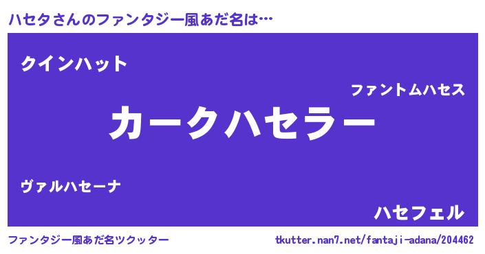 | 男性向けラノベタイトル風あだ名 | 『ハセタに滅ぼされるだけの簡単なお仕事です』 |