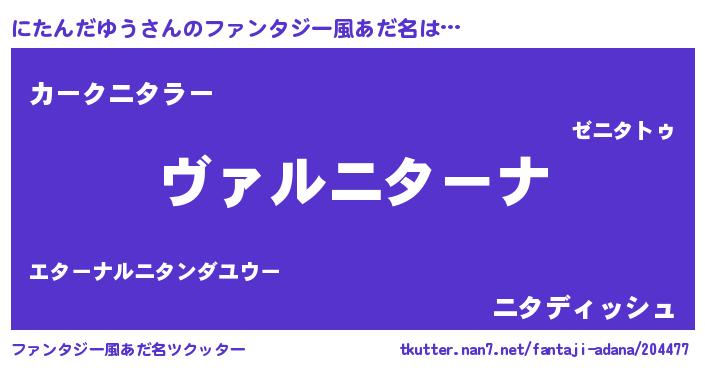 | 男性向けラノベタイトル風あだ名 | 『魔弾の王とにたんだゆう』 |