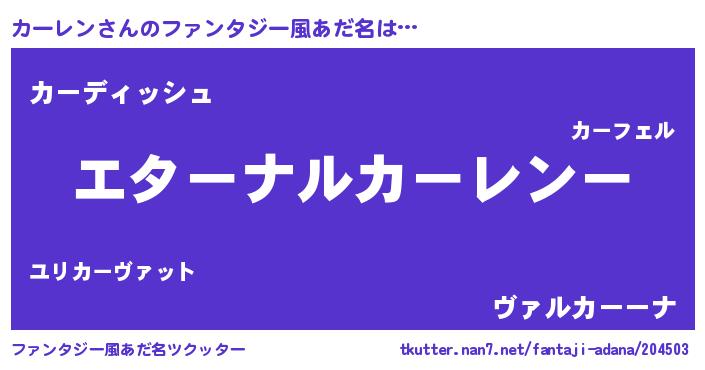 | 意味不明あだ名 | 『カーレンフォーエバー』 |