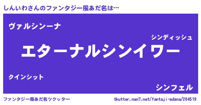 | 意味不明あだ名 | 『しんいわフォーエバー』 |