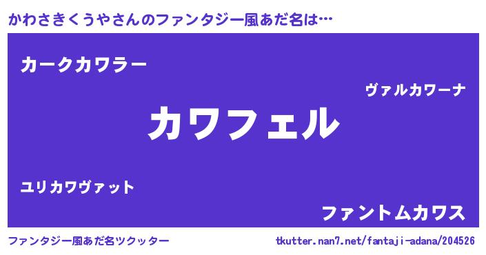 | 男性向けラノベタイトル風あだ名 | 『カワサキクウヤアートオンライン』 |