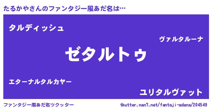 | 男性向けラノベタイトル風あだ名 | 『たるかやに滅ぼされるだけの簡単なお仕事です』 |