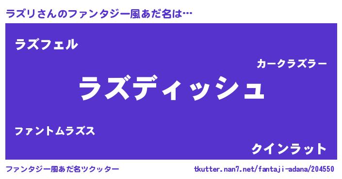 | ヘコむあだ名 | 『ラズリ(爆)』『ラズにゅー』 |