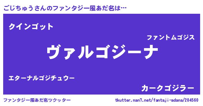 | 男性向けラノベタイトル風あだ名 | 『この素晴らしい世界にごじちゅうを!』 |
