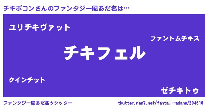 | 意味不明あだ名 | 『ペロリンチキポコン』『自称チキポコン』 |
