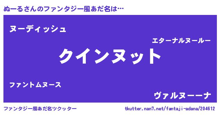 | 女子向けラノベタイトル風あだ名 | 『死神ぬーるの再婚』『ぬーる伯爵の花嫁』 |