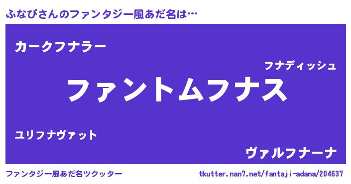 | 男性向けラノベタイトル風あだ名 | 『ふなぴの嫁は女の子じゃないと思った?』 |