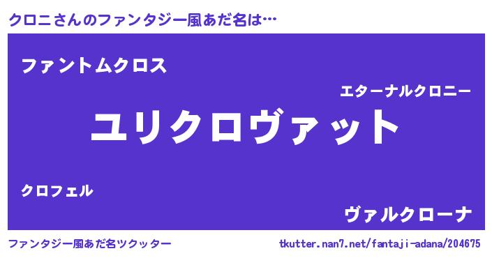 | 男性向けラノベタイトル風あだ名 | 『転生したらクロニだった件』 |