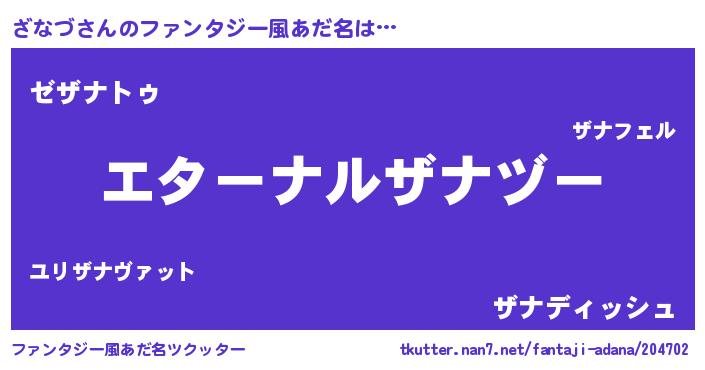| 意味不明あだ名 | 『ざなづフォーエバー』『自称ざなづ』 |