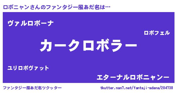 | 男性向けラノベタイトル風あだ名 | 『うちのロボニャンが世界を掌握している!』 |